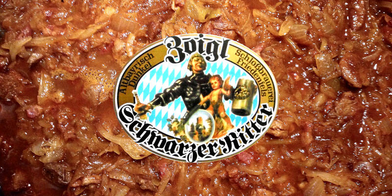 In einem separaten Topf die Brühe kurz aufkochen, Kümmel zugeben, Butter und Bier einrühren. Die Bierbrühe in den Topf mit dem Fleisch und dem Gemüse gießen, Deckel drauf und das Ganze für eine Stunde in den auf 180 °C vorgeheizten Ofen stellen.